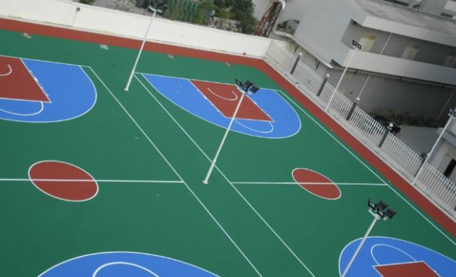 3、硅PU網(wǎng)球場底漆施工:基層干燥后,對明顯凸出部分進行打磨處理,然后施工底漆,施工時水泥基面要求堅固、干燥、干凈、平整,無油污及粉化現(xiàn)象。