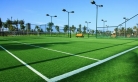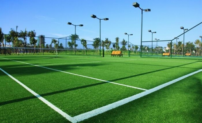 該人工草坪的腳感、球的反彈速度和指標(biāo)與天然草十分接近。草坪上的所有白線和標(biāo)志均在鋪設(shè)時用白色的樹脂纖維一次成型、無毒、無味,環(huán)保產(chǎn)品。